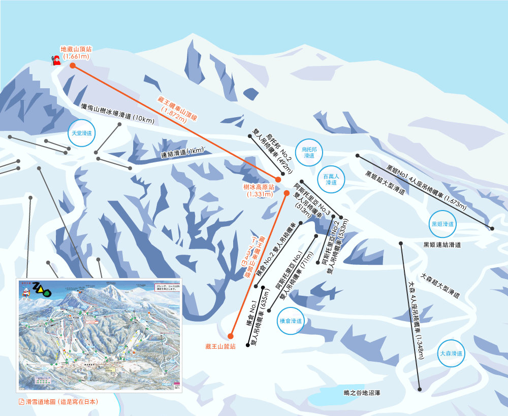 接下來的路線就是前往◆藏王山麓站◆樹冰高原站◆藏王山頂站這三個地方。