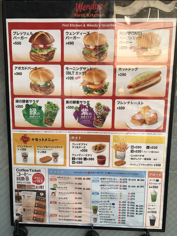 漢堡落在300円~500円,可以搭配100~150円加薯餅飲料或薯條跟湯,對早餐來說算是很奢侈的早餐。