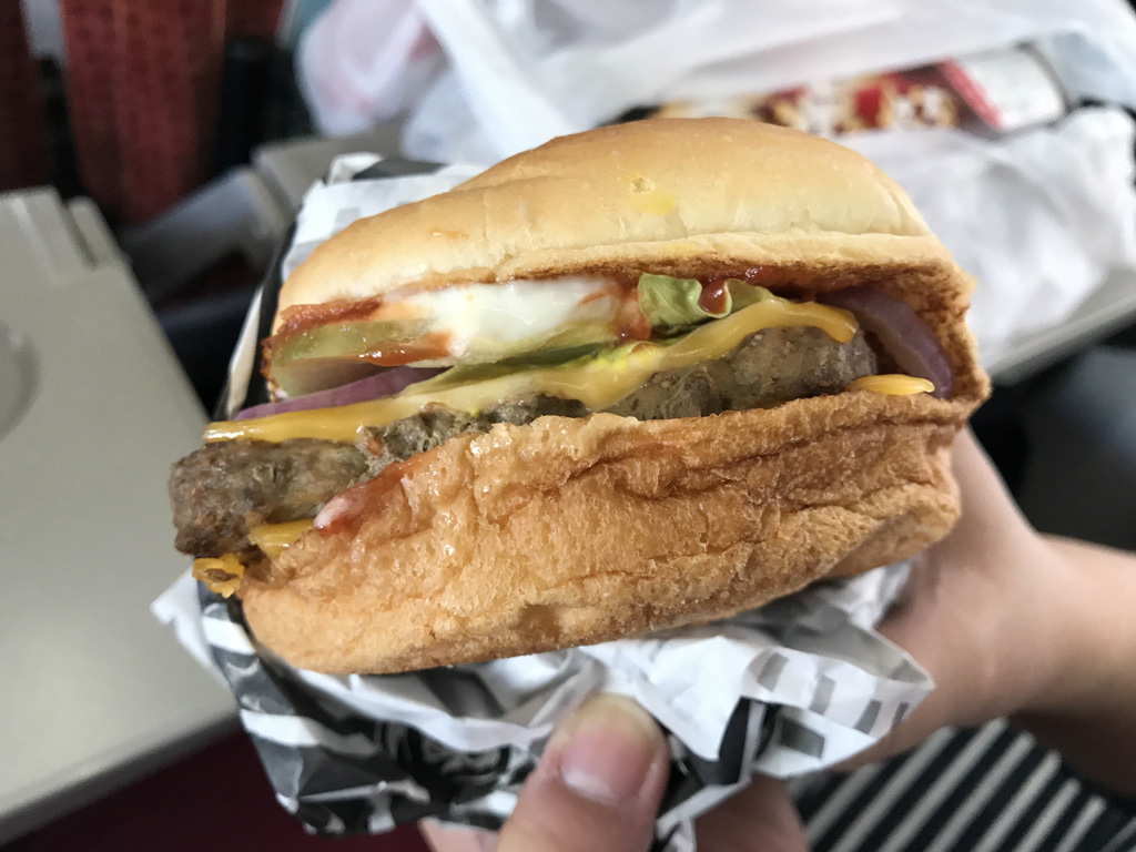 漢堡肉部分煎的並不會很焦,咬下後也能感受到一點點肉汁,搭配洋蔥以及酸黃瓜可以減輕過油的感覺。