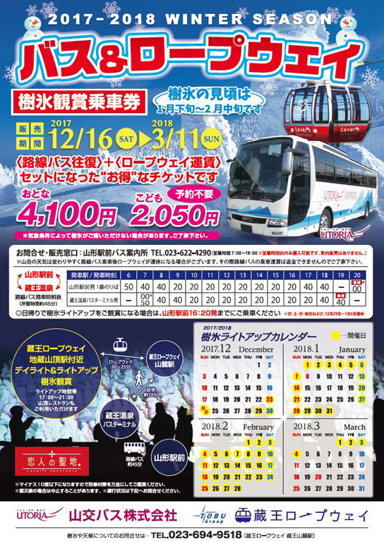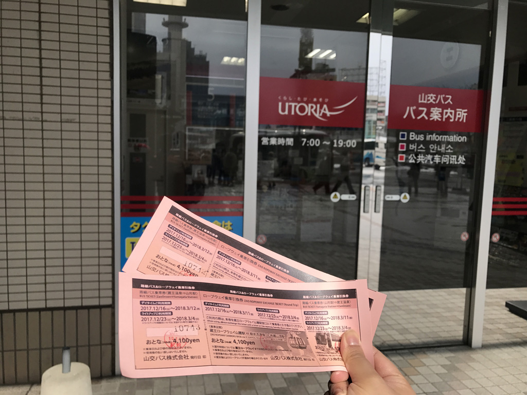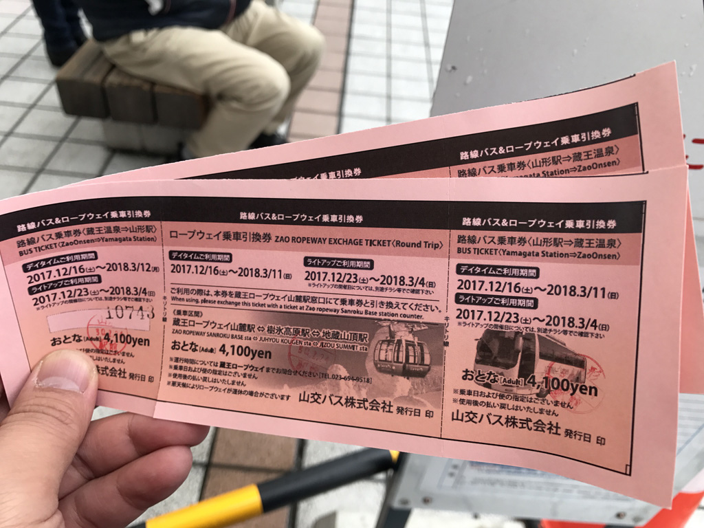 票券是4000円,內含巴士來回票和樹冰纜車來回。(若非限定時期將依照現場為準)