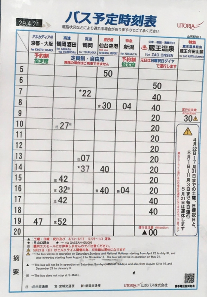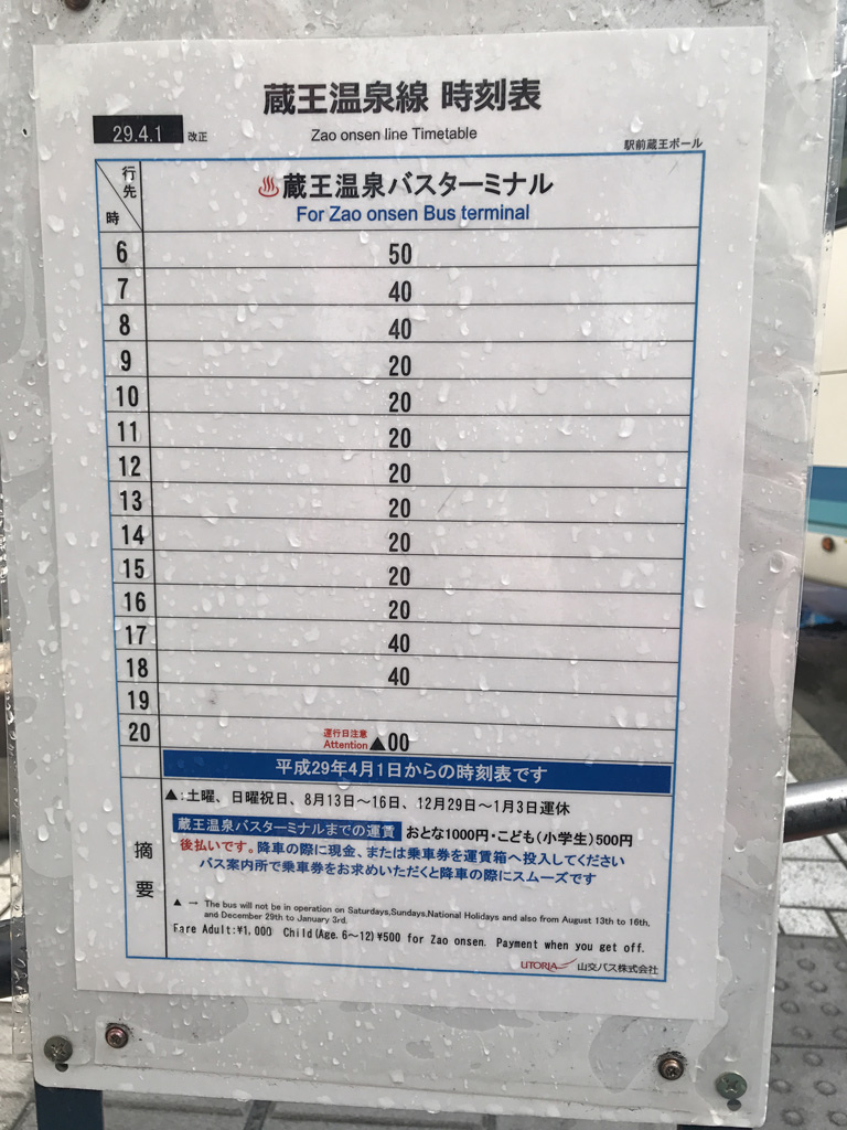 原則上藏王溫泉巴士大約一小時一班,如果太晚排的話有可能會坐到車子走道或是加開班次的車。