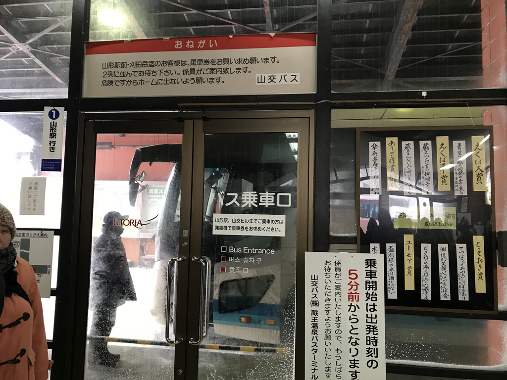 門口地方可以看到往藏王溫泉的招牌,站在這邊等車子就會來囉。