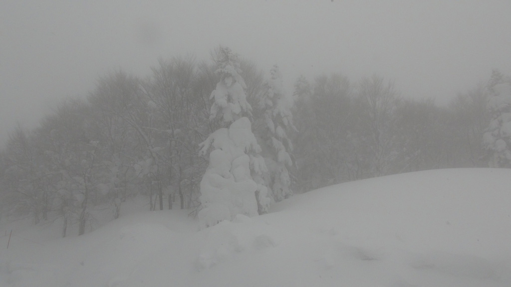 當來到樹冰高原的時候,坦白說風加雪已經不小,但能見度還算高,但萬萬沒想到前往山頂站情況更惡劣。