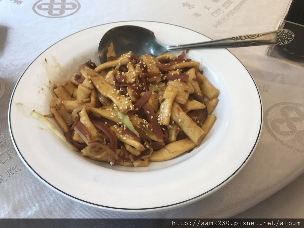 今天總共點了,三絲炒板條、滑蛋碎牛肉、韭黃炸春捲、蠔黃叉燒包,一口氣就點了三套。